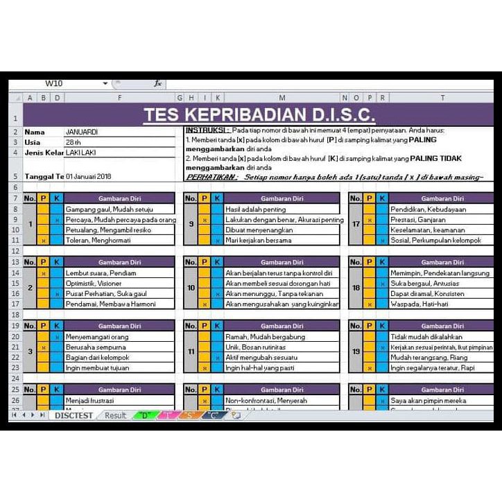 Soal Tes Disc Pdf / Download Soal Tes Disc Pdf - Guru Paud - Tes psikologi kepribadian disc ini adalah alat penilaian perilaku berdasarkan teori disc dari psikolog william moulton marston, yang berpusat pada 4 sifat perilaku yang berbeda, yaitu dominance, influence, steadiness, dan compliance.. Tes disc asli terdiri dari 24 item, dengan waktu yang diperlukan untuk pelaksanaannya adalah 7 menit. Download soal tes disc pdf. Contoh soal tes disc kepribadian untuk tes kerja halo semuanya. Dapatkan contoh soal psikotest lengkap kumpulan soal soal psikotes yang bisa membantu untuk persiapan test masuk kerja ataupun test masuk sekolah dan kuliah contoh. Tes disc instrument ini dikembangkan oleh william moulton marston (1928), tes ini mengukur:
